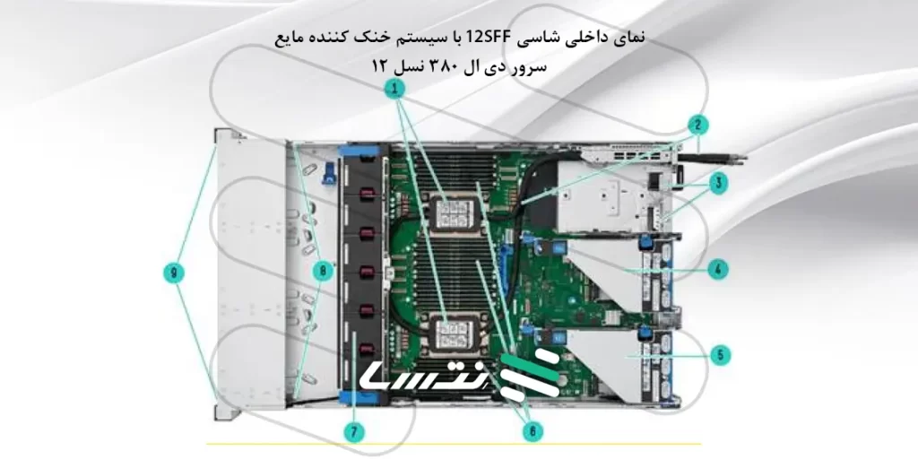 نمای داخلی شاسی 12LFF – خنکسازی مستقیم با مایع